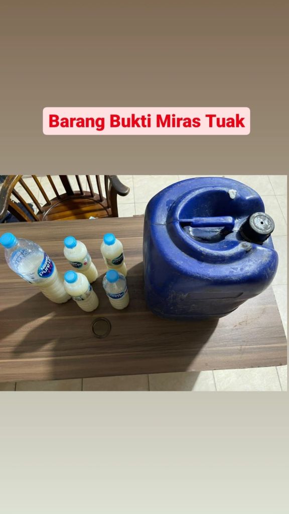 “Dari kegiatan operasi malam ini,dijelaskan Joko Sutriyatno berhasil mengamankan penjual miras jenis tuak dikawasan pasar tengah dengan pemilik barang bukti berinisial DEP (52) warga kecamatan Pontianak Kota dengan barang bukti 1 jerigen minuman jenis tuak, 4 Botol kecil minuman jenis tuak, dan 1 botol besar minuman jenis tuak yang sudah siap jual”.Jelasnya.