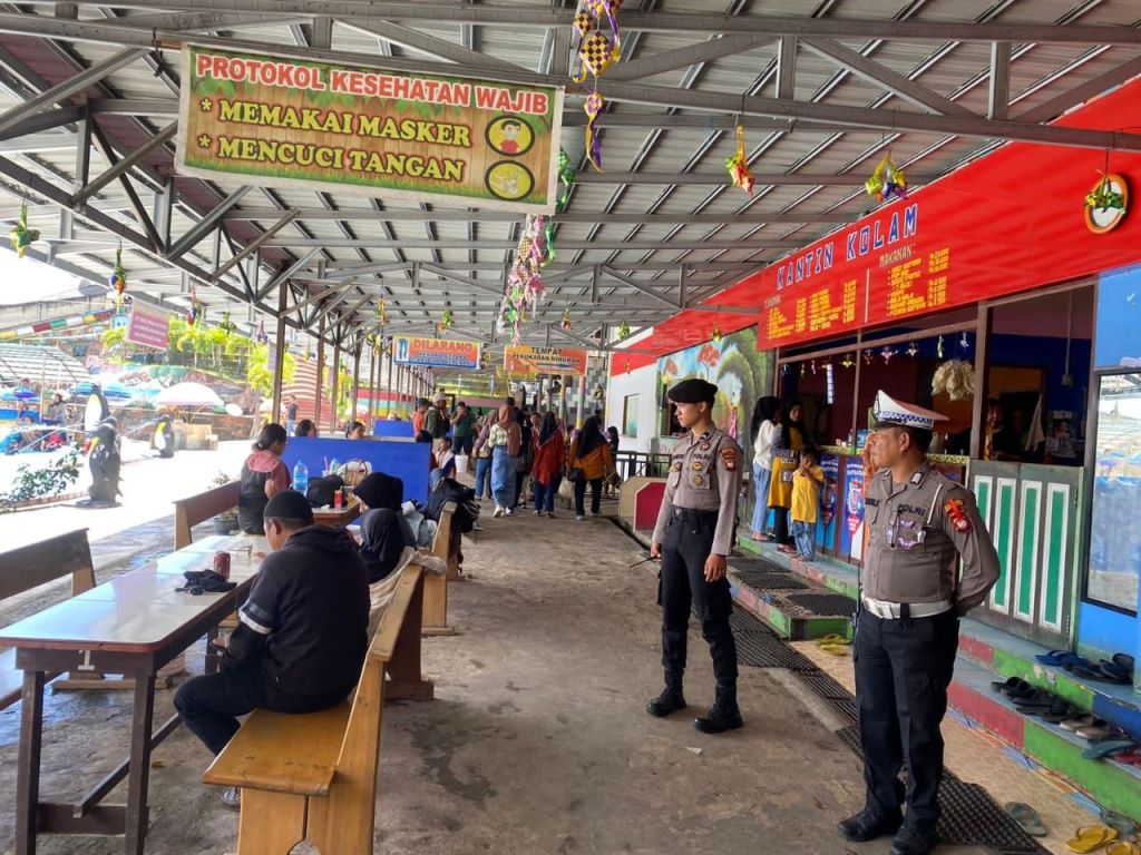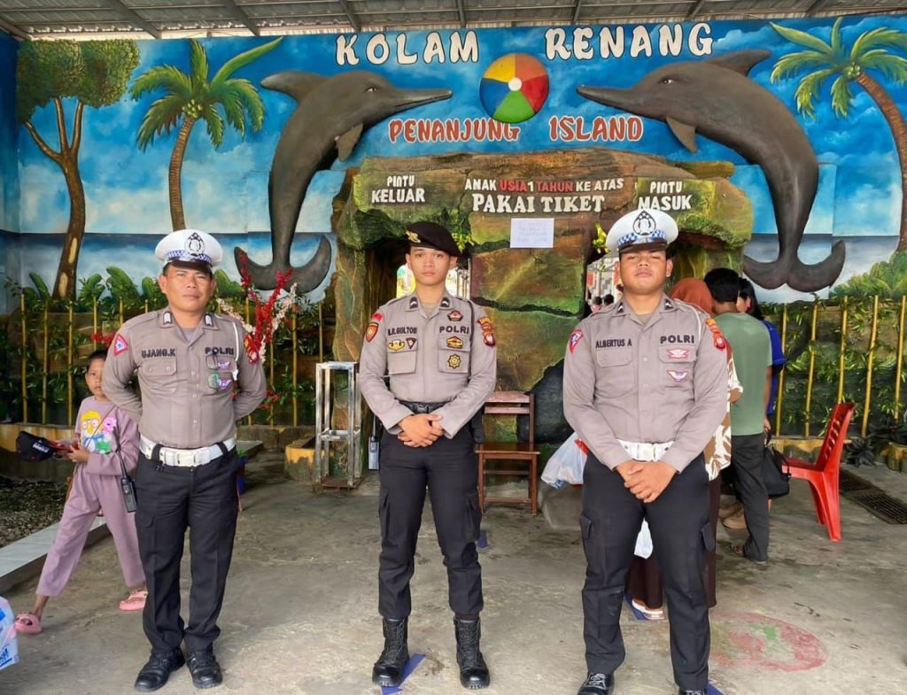 SEKADAU, Polda Kalbar – Ciptakan suasana aman dan kondusif selama libur Idul Fitri 1445 H, petugas Pos Pelayanan (Posyan) Operasi Ketupat Kapuas Polres Sekadau melakukan patroli dialogis ke tempat wisata Kolam Renang Penanjung Island, Jalan Merdeka Timur, pada Sabtu (13/4/2024).