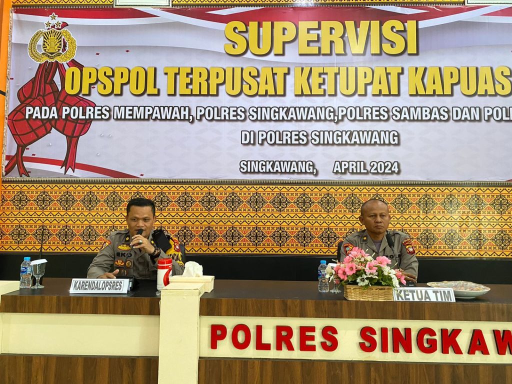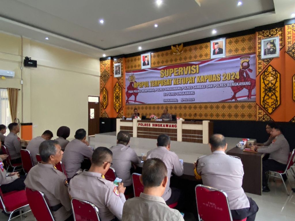 SINGKAWANG, Polda Kalbar- Polres Singkawang, Telah dilaksanakan kegiatan Supervisi Roops Polda Kalbar dalam rangka Operasi Kepolisian Ketupat Kapuas 2024 bertempat di aula SAR Polres Singkawang yang beralamat di Jl. Firdaus H. Rais II Kel. Pasiran Kec. Singkawang Barat Kota Singkawang, Senin (15/4/2024).