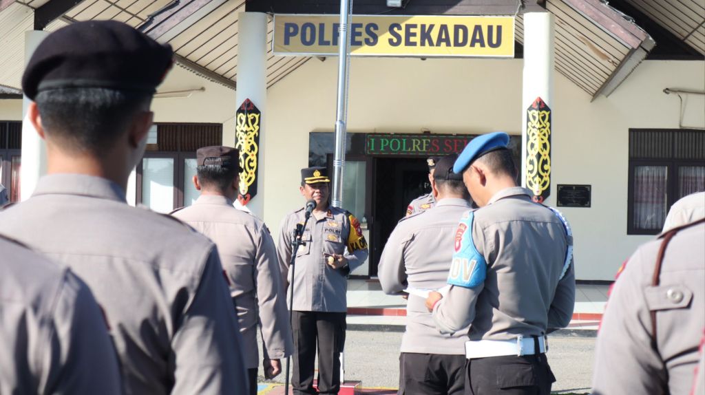 SEKADAU, Polda Kalbar – Kapolres Sekadau AKBP I Nyoman Sudama mengambil apel perdana pasca libur hari raya Idul Fitri 1445 H. Apel dilaksanakan di halaman Mapolres Sekadau, dan dihadiri Wakapolres Kompol Riko Syafutra, para PJU beserta seluruh anggota Polres Sekadau, Selasa (16/4/2024).
