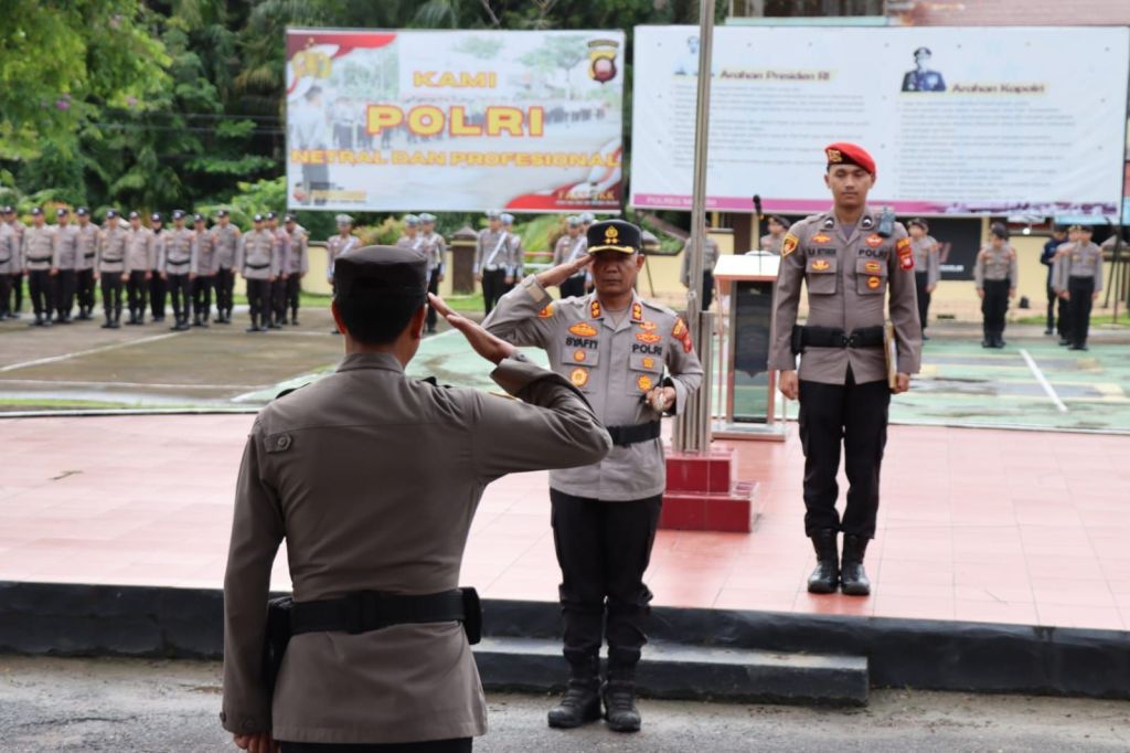 Polres Melawi Polda Kalbar – Kapolres Melawi Polda Kalbar AKBP Muhammad Syafi’i, S.I.K., S.H., M.H selaku inspektur upacara pada upacara Hari Kesadaran Nasional yang dilaksanakan setiap tanggal 17 di lapangan Bhayangkara yang dihadiri PJU, Perwira, Bintara dan ASN dilingkungan Polres Melawi, rabu (17/4/2024).