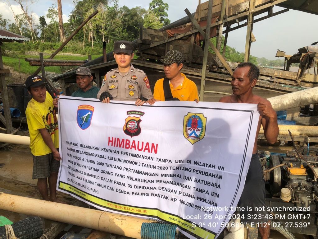 Pelaksanaan himbauan dan sosialisasi yang dilakukan sekaligus guna memastikan tidak ada aktifitas penambangan di wilayah Kecamatan Ella Hilir baik di DAS (Daerah Aliran Sungai ) Melawi mau pun di daratan.