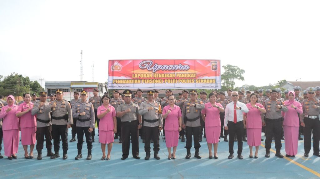 Upacara laporan kenaikan pangkat pengabdian personel Polri ini dihadiri oleh Wakapolres Sekadau Kompol Riko Syafutra, para PJU dan Kapolsek jajaran, serta Ketua Bhayangkari Cabang Sekadau Ny. Echa Nyoman Sudama beserta pengurus Bhayangkari.