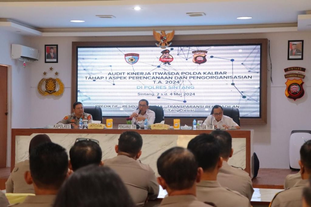Tak kurang selama 2 hari penuh, tim Itwasda Polda Kalbar melakukan audit terhadap Polres Sintang dan jajarannya yakni dari tanggal 2 hingga 3 Mei 2024.