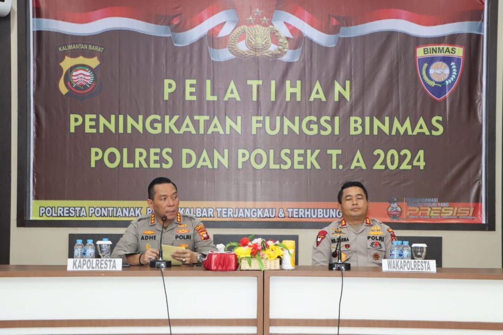 Pontianak,Polda Kalbar – Untuk menghadapi tantangan tugas diera globalisasi,Polresta Pontianak menggelar pelatihan fungsi Binmas bagi personel Satuan Binmas dan pengemban fungsi Binmas Polresta Pontianak dan Polsek Jajaran yang berlangsung diaula utama Polresta Pontianak Jl. Johan Idrus, Rabu (8/5/2024) pagi.