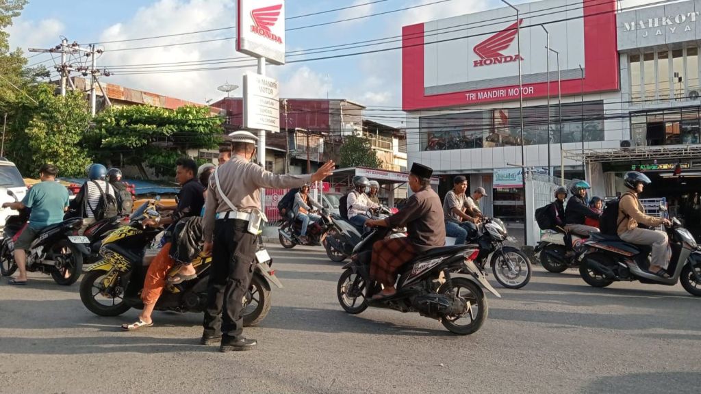 Dalam upaya meningkatkan keselamatan dan kelancaran arus lalu lintas, pengaturan dilakukan pada sejumlah titik strategis. Personel berdiri dengan sigap di persimpangan jalan, melaksanakan tugas pengaturan dengan penuh tanggung jawab.