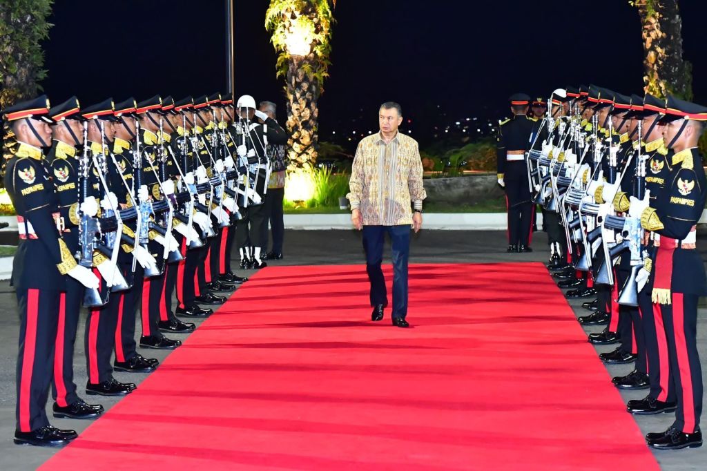 Presiden Jokowi yang mengenakan kemeja kain tenun sintang tiba di GWK, sekitar pukul 18.50 WITA. Presiden Jokowi kemudian menyambut kedatangan para tamu seraya berfoto bersama sebelum memasuki area jamuan.