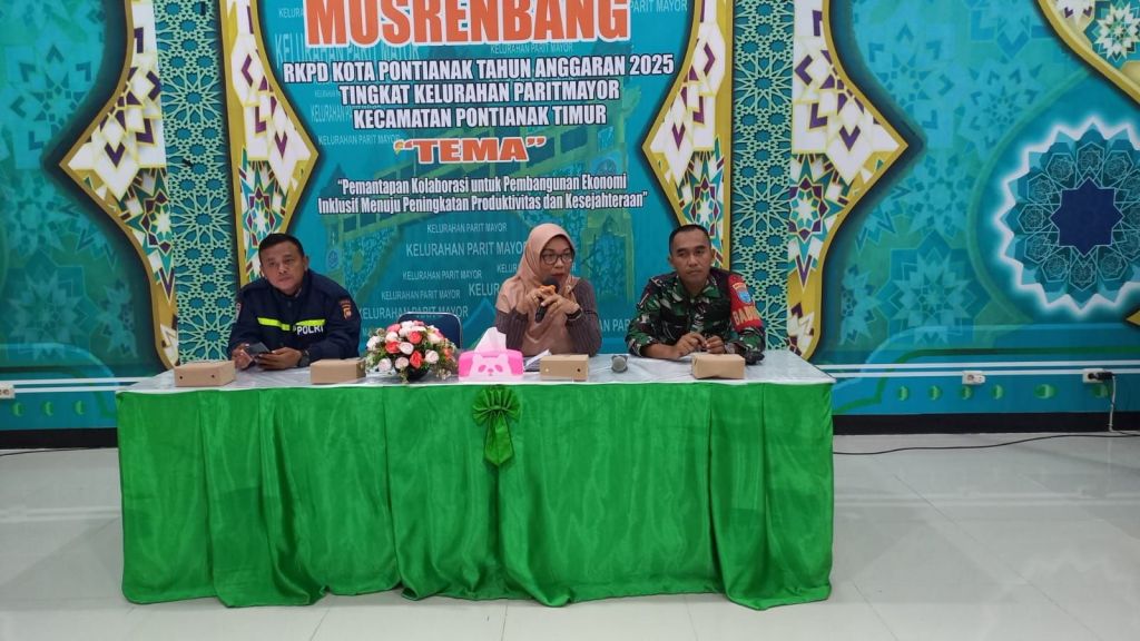 Pontianak, Polda Kalbar – polsek Pontianak Timur Polresta Pontianak, Bhabinkamtibmas Kelurahan Parit Mayor Aipda Firman.SH bersama Lurah Parit Mayor Ibu Erlin AgusTiningsyih dan Babinsa Parit Mayor menghadiri acara pertemuan Forum RT dan RW di Aula Kelurahan Parit Mayor Pontianak Timur.
