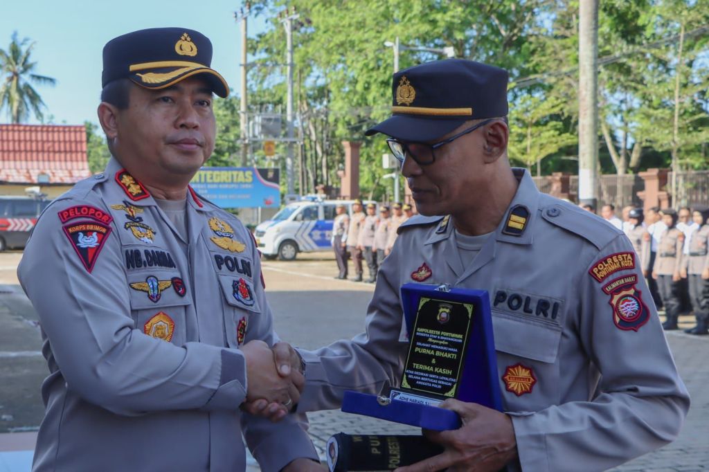 Acara apel pelepasan ini diwarnai dengan prosesi pemberian penghargaan dan cinderamata kepada Iptu Misnam sebagai bentuk penghargaan atas jasa-jasanya selama bertugas. Seluruh peserta apel memberikan penghormatan terakhir kepada Iptu Misnam yang memasuki masa purna bhakti dengan tepuk tangan meriah dan suasana haru.