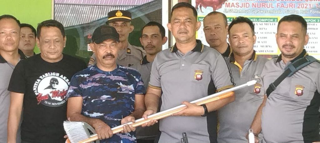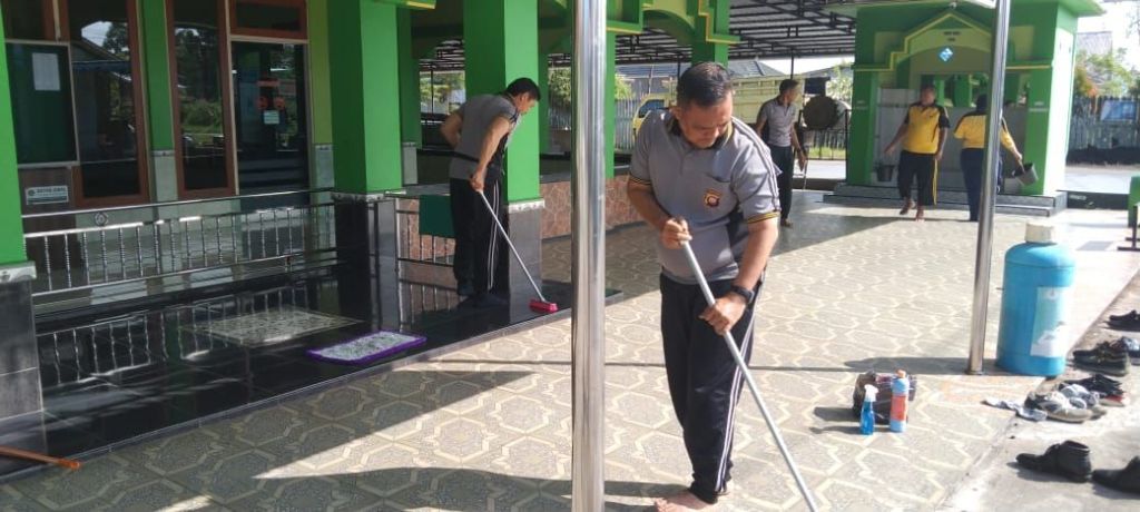 Sasaran kali ini melaksanakan bersih – bersih dimasjid Nurrul Fajri Jl. Gusti Situt Mahmud Gg. Swasembada 1 Pontianak Utara,puluhan personel dipimpin Kapolsek Pontianak Utara AKP Suryadi, SH, M.Ap dengan membawa peralatan kebersihan sapu,pengepel dan berbagai alat kebersihan langsung membersihkah masjid dan libgkungannya agar terlihat bersih dan rapi.