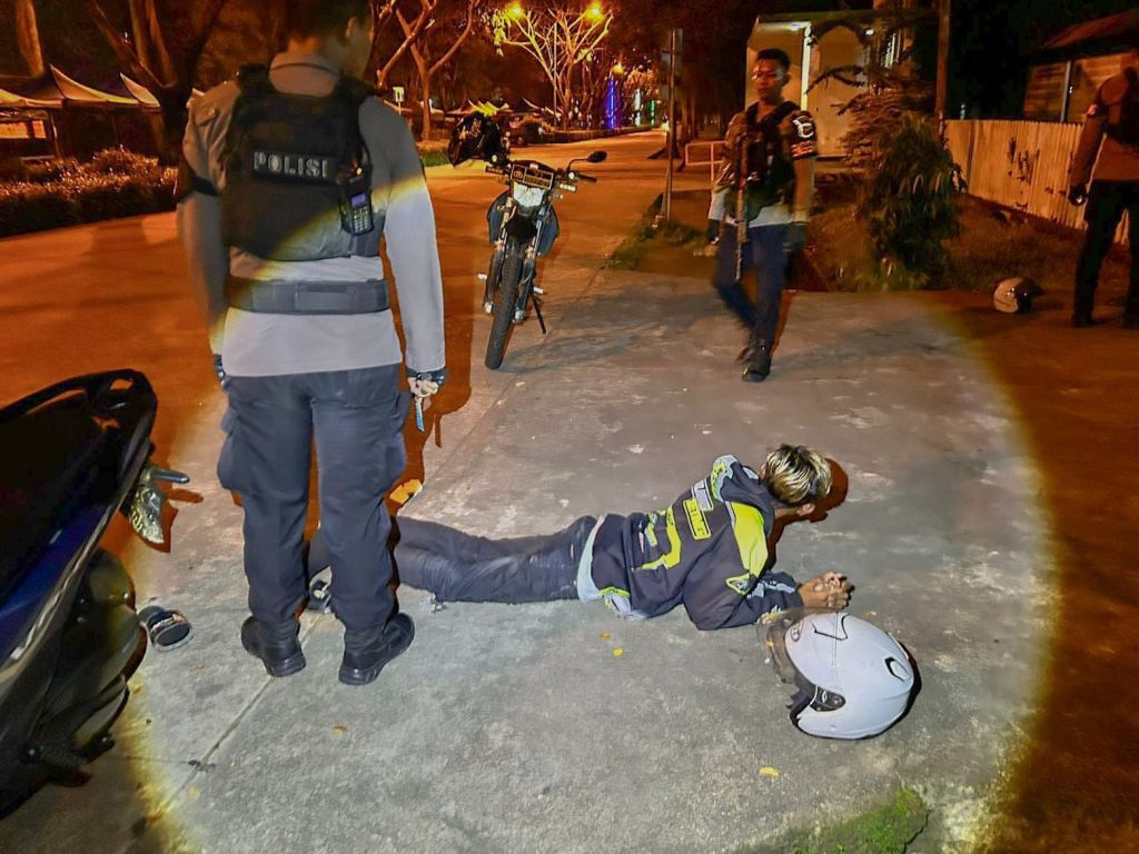 Pada pukul 03.04 WIB Tim Enggang Khatuliatiwa memberhentikan 2 remaja yang mengendarai sepeda motor dengan gelagat mencurigakan di Jl. MT Haryono Pontianak Selatan , kemudian tim memeriksa barang bawaan ke 2 remaja tersebut hingga memeriksa ke dalam jok motor dan tubuh mereka antisipasi membawa barang atau benda yg membahayakan.