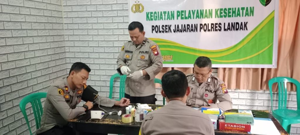 Polres Landak – Polsek Mempawah Hulu, Sebagai upaya untuk memastikan kondisi tubuh tetap sehat dan prima serta memaksimalkan pelaksanaan tugas dalam memberikan pelayanan kepada masyarakat, Seksi Kedokteran dan Kesehatan (Sie. Dokkes) Polres Landak melaksanakan pemeriksaan kesehatan berkala bagi seluruh personel Polsek Mempawah Hulu. Selasa (18/06/2024).