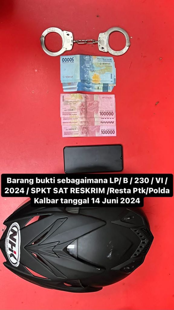 PONTIANAK, Polda Kalbar – Jatanras Sat Reskrim Polresta Pontianak membekuk 1 (satu) orang tersangka curas sebagaimana dimaksud dalam Pasal 365 KUH Pidana yang terjadi Pada hari Senin (14/6/24) sekitar pukul 02.30 WIB di Jalan Ampera GG. Alam, kontrakan kopel abu-abu Nomor 3, Kelurahan Sungai Jawi, Pontianak Kota, Kota Pontianak, Kalimantan Barat yang lalu.
