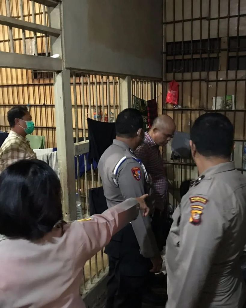 Kapolsek Pontianak Selatan, AKP Dumaria Silalahi, S.H., bersama dengan personil Polsek, melakukan pengecekan rutin terhadap tahanan yang berada di dalam ruang tahanan Mapolsek Pontianak Selatan. Selain memeriksa kondisi dan kesehatan tahanan, Kapolsek juga memastikan bahwa barang-barang yang ada di ruang tahanan tidak bersifat berbahaya.