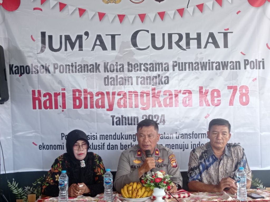 Hal ini disampaikan oleh Kapolsek Pontianak Kota Kompol Eeng Suwenda dirinya mengatakan bahwa pada hari Jumat tanggal 20 Juni 2024 kami Polsek Pontianak Kota mengundang para Purnawirawan Polri guna untuk melakukan kegiatan Jum’at Curhat.