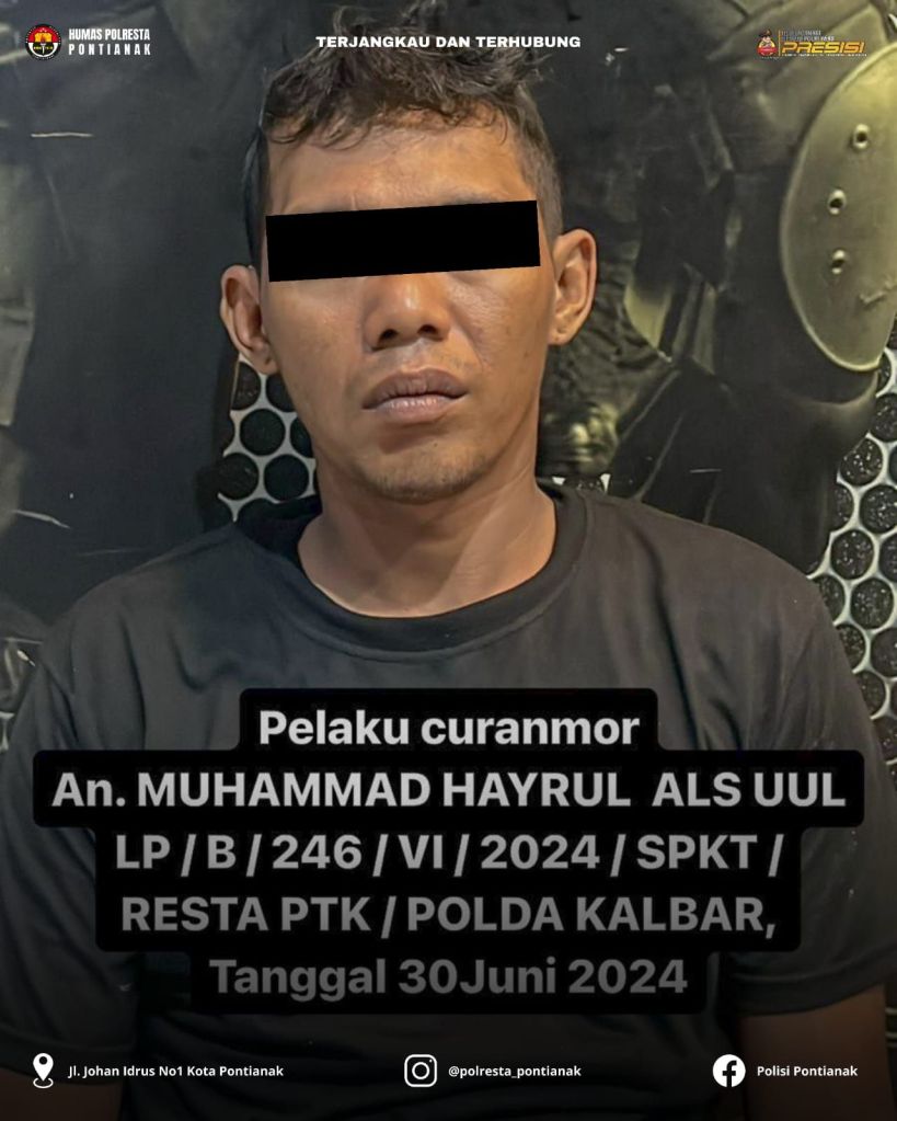 “Menindaklanjuti LP tersebut kami segera olah TKP dan menganalisa CCTV dan kami dapatkan bahwa tersangka yang telah mengambil sepmot pelapor merupakan residivis pencurian a.n UUL, dan akhirnya pada tanggal 30 Juni 2024 sekitar pukul 22.00 WIB kami mendapat informasi bahwa tersangka sedang berada di Jalan Tanjungpura nah disaat akan dilakukan penangkapan, tersangka berusaha kabur sehingga dilakukan tindakan tegas terukur dengan melumpukan tersangka dengan tembakan di kaki kiri dan kaki kanan”, ungkap Kompol Antonius.