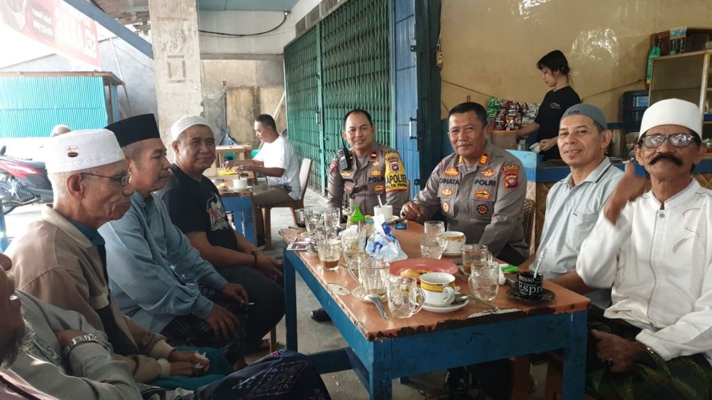 Ketapang – Polda Kalbar, Menjelang Tahapan Pemilihan Kepala Daerah (Pilkada) 2024, Kasat Binmas Polres Ketapang, AKP Sumiadinata, bersama Kapolsek Delta Pawan IPDA Chepry menggelar kegiatan cooling system dengan mengajak jamaah suling (Subuh Keliling) Kota Ketapang untuk ngopi bersama di Warung Kopi Pasar Baru Ketapang, Senin (08/07/2024) Pukul 05.30 wib.. Kegiatan ini bertujuan untuk memperkuat persatuan dan menjaga situasi kondusif di tengah masyarakat.