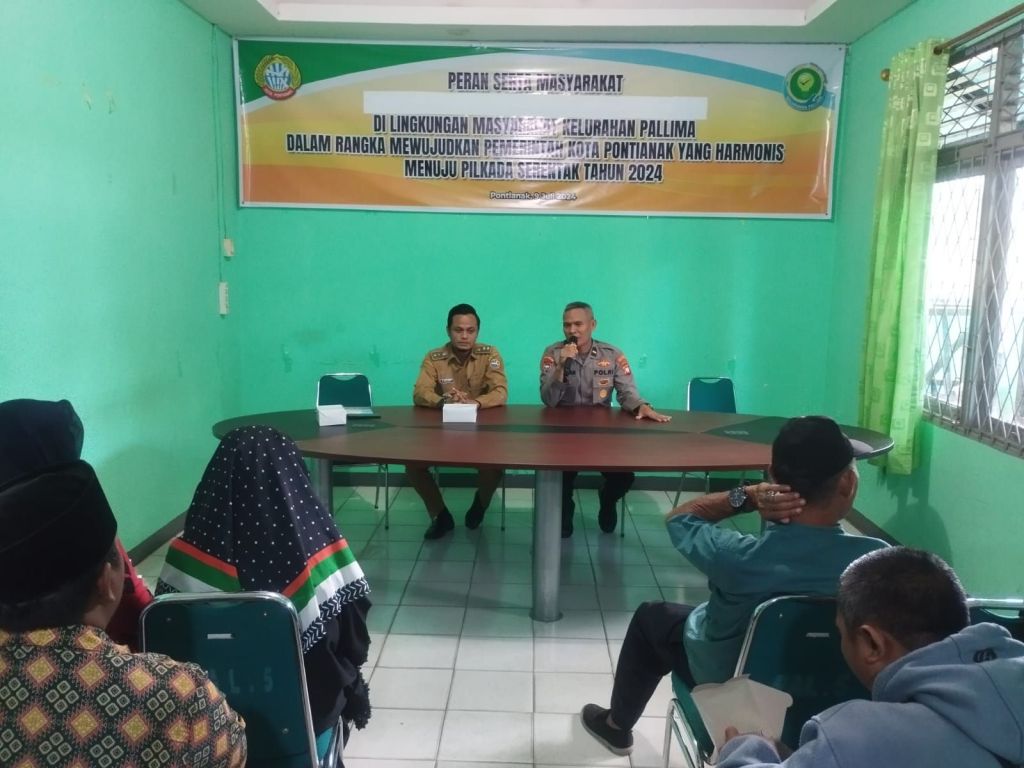 Pontianak, Polda Kalbar – Polresta Pontianak, Pontianak Barat. Dalam rangka mewujudkan Pemerintah Kota Pontianak yang harmonis menjelang Pilkada serentak tahun 2024, Ipda Rahman, selaku Panit 1 Binmas Polsek Pontianak Barat, menghadiri acara sosialisasi peran serta masyarakat di lingkungan masyarakat Pall V di Aula Kelurahan Pall V, jalan Husein Hamzah Kel. Pall V Kec. Pontianak Barat, Selasa 9/7/2024.
