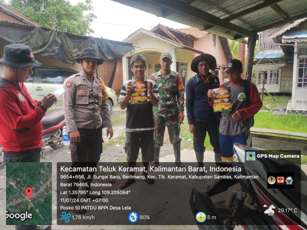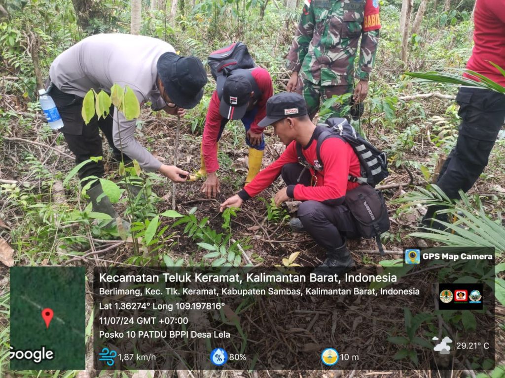 POLRES SAMBAS – Polda Kalbar | Polsek Teluk Keramat, Dalam upaya mencegah dan mengantisipasi terjadinya kebakaran hutan dan lahan (Karhutla), tim patroli gabungan yang terdiri dari anggota POLRI, TNI, Manggala Agni, dan masyarakat setempat melaksanakan patroli di Desa Lela, Kecamatan Teluk Keramat, Kabupaten Sambas. Patroli yang dimulai pada pukul 09.30 WIB ini bertujuan untuk memonitor dan mengatasi potensi titik api di wilayah tersebut.