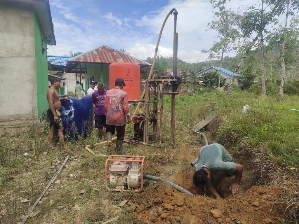 “Penentuan titik sumur bor air bersih di masjid Hayatul Muslimin Dusun Perembang Desa Landau Tubun Kecamatan Pinoh Selatan,” ujar Ipda Darmawan Susilo, S.E.