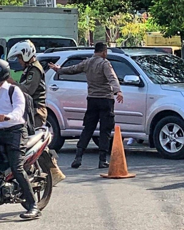 Pontianak Selatan, Polda Kalbar – 15 Juli 2024. Personil Pos Pol Kotabaru Polsek Pontianak Selatan melaksanakan pengaturan lalu lintas (gatur lalin) serta pengamanan di sekitar Bundaran Kotabaru, Jalan Prof. M. Yamin. Tindakan ini dilakukan menyusul insiden tumpahnya solar dari mobil tangki Pertamina di lokasi tersebut.