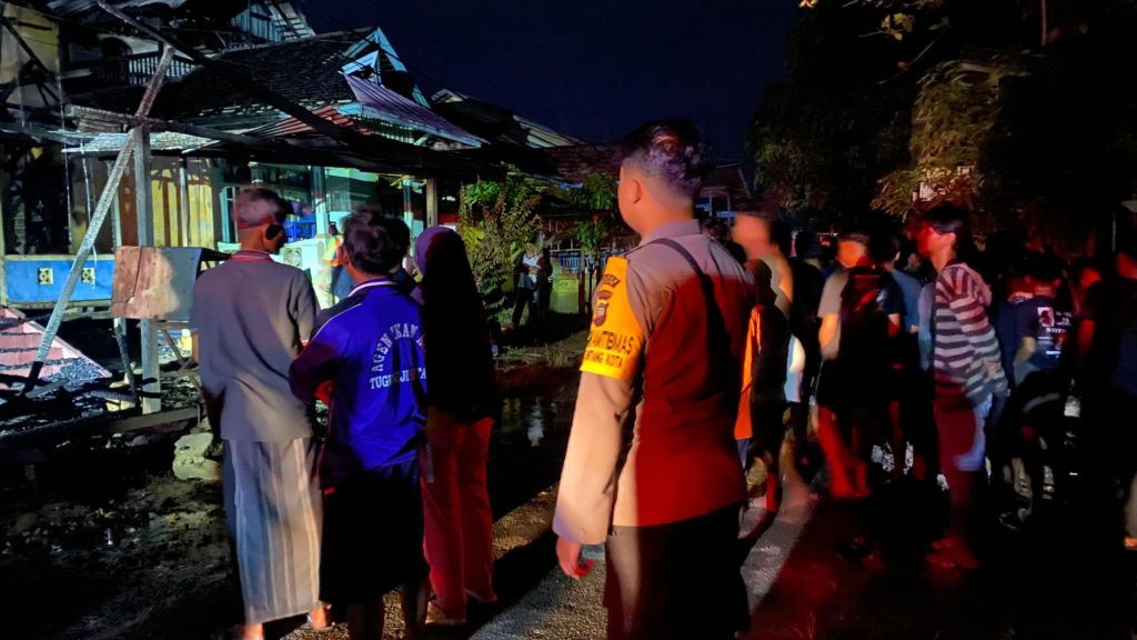 “Pada kebakaran ini laporan yang sudah kita dapat itu ada 2 bangunan yang habis terbakar yakni rumah dan warung warga serta 1 satu rumah lagi yang terbakar pada bagian atap saja” Ujar Kapolsek.