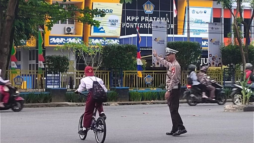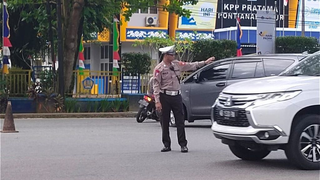 Pontianak Selatan, Polda Kalbar personil Polsek Pontianak Selatan melaksanakan pengaturan dan penjagaan lalu lintas di Wilayah Polsek Pontianak Selatan antisipasi macet lalu lintas dan kecelakaan Lalu lintas di Wilayah Pontianak Selatan. Kamis, 22/7/2024.