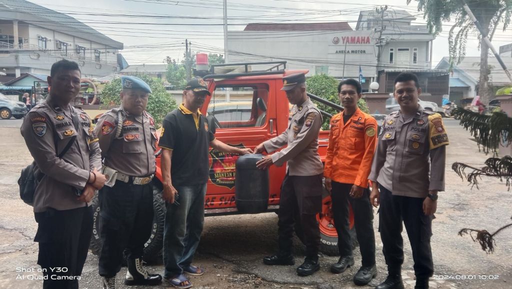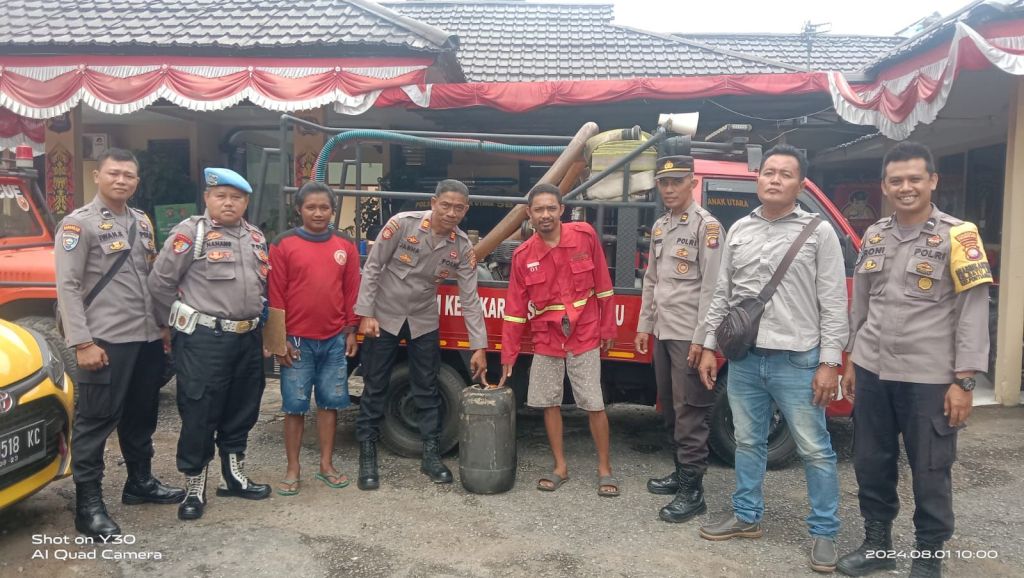 Pontianak,Polda Kalbar – Polsek Pontianak Utara bantu BBM (Bahan Bakar Minyak) kwpada pwmadam kebakaran swata yang turut berpartisipasi dalam upaya pwmadaman kebakaran lahan diwilayah Kecamatan Pontianak Utara, Kamis (1/8/2024) pagi.