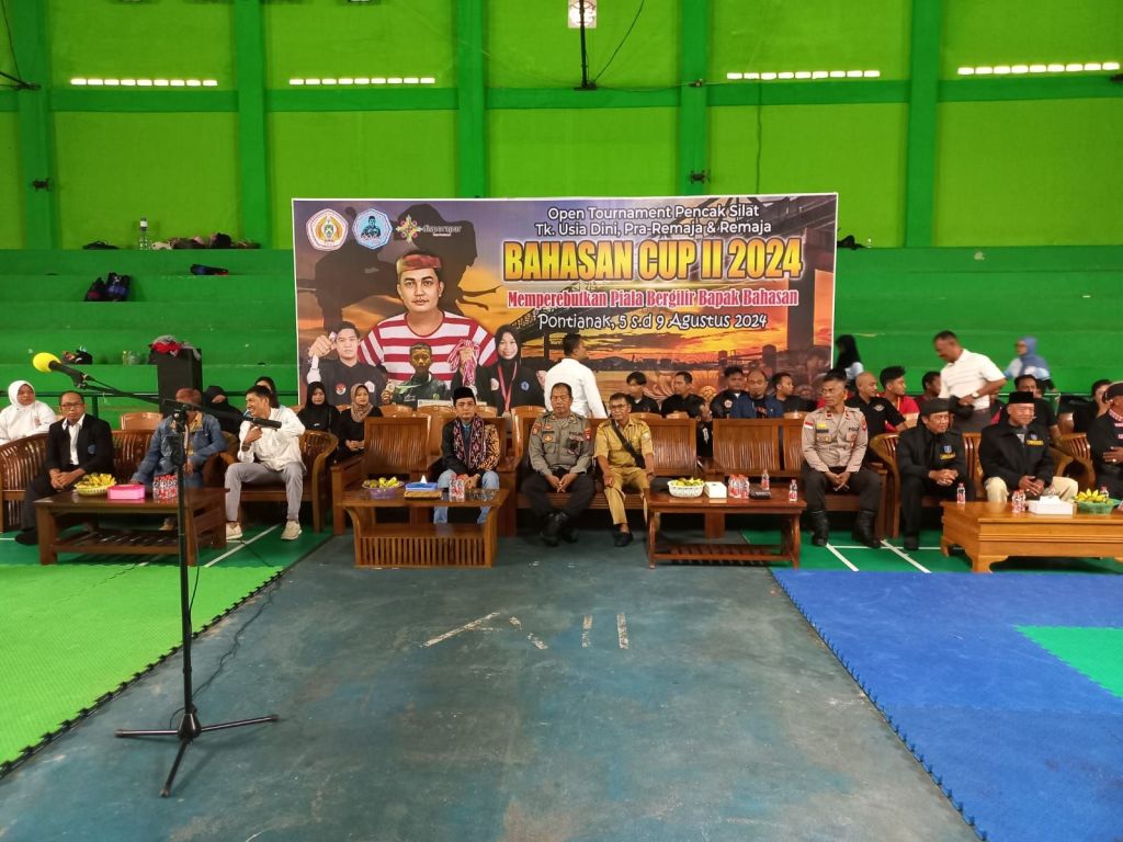 Pontianak, Polda Kalbar – Kanit Samapta Polsek Pontianak Barat AKP Nursadi menghadiri giat pembukaan open turnamen pencak silat Bahasan Cup II 2024 yang dimana kegiatan tersebut berlangsung di GOR PBSI, Jl. Tabrani Ahmad, Kel. Pall V Kec. Pontianak Barat. Senin, 5/8/2024.