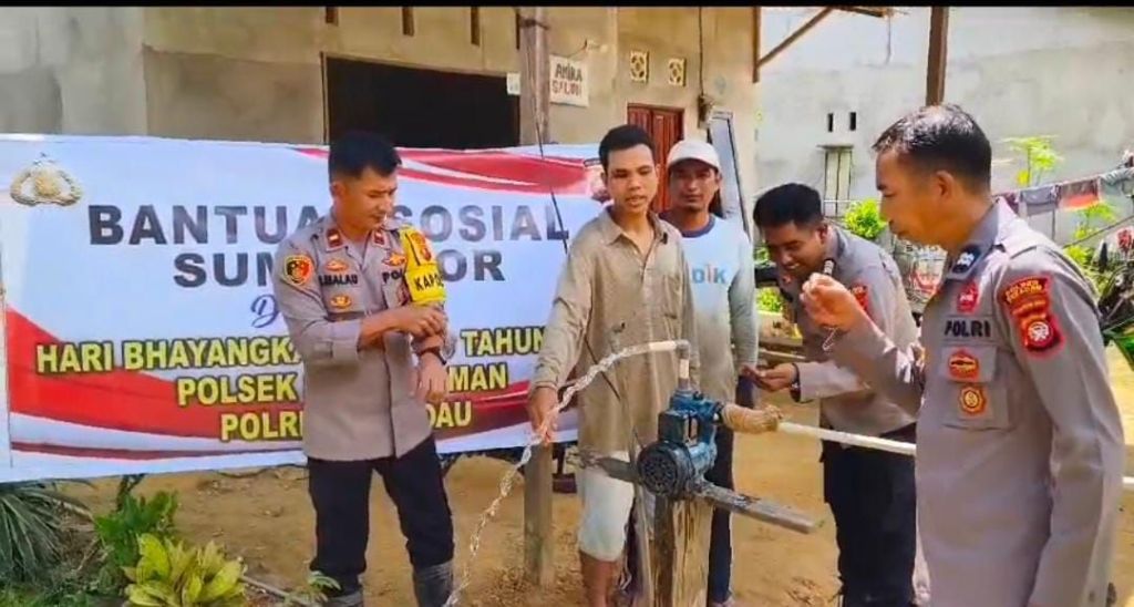 SEKADAU, Polda Kalbar – Polsek Nanga Taman memberikan bantuan sumur bor kepada warga Desa Nanga Kiungkang, Kecamatan Nanga Taman, Sekadau, Kalbar. Bantuan ini diserahkan langsung oleh Kapolsek Nanga Taman, IPDA Insan Malau, S.H, pada Kamis (8/8), sebagai bagian dari rangkaian peringatan Hari Bhayangkara ke-78 Tahun 2024.