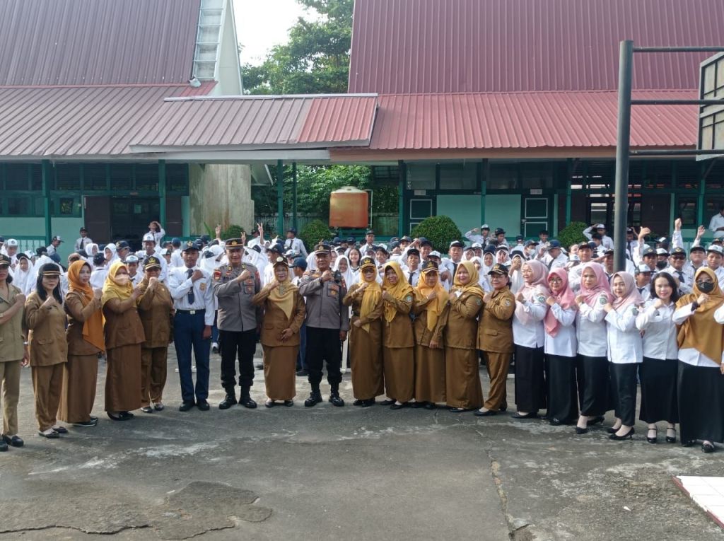 Pontianak, Polda Kalbar, – Waka Polsek Pontianak Kota AKP Surojo menjadi pembina Upacara Bendera di SMPN 19 Pontianak.