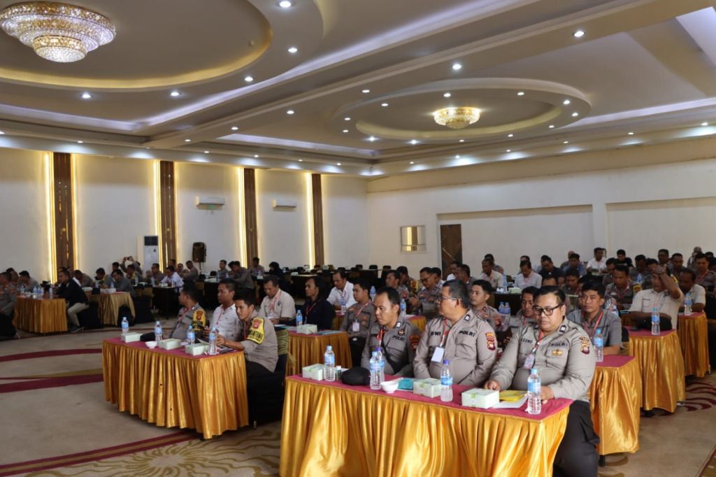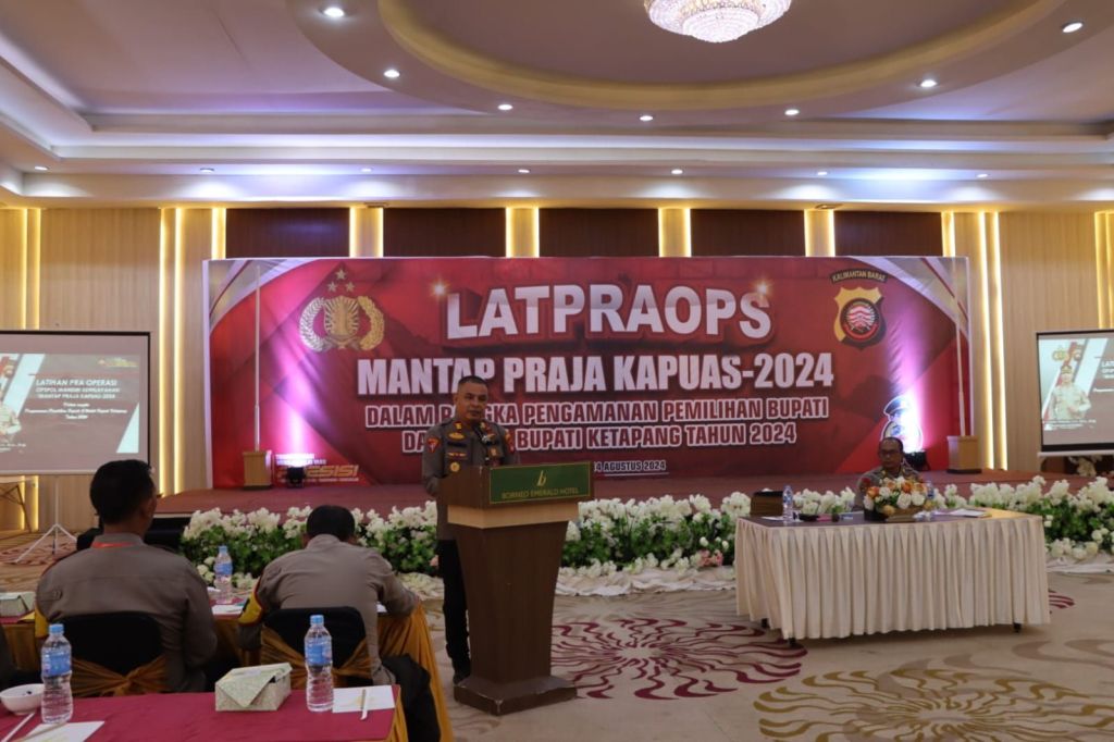 Ketapang – Polda Kalbar, – Dalam rangka memastikan kesiapan pengamanan selama tahapan Pemilihan Umum Kepala Daerah (Pemilukada) 2024, Polres Ketapang menggelar latihan pra operasi di Aula Ballroom Hotel Borneo Emerald Ketapang, Rabu siang (14/08/2024). Latihan ini diikuti oleh seluruh personel yang akan terlibat dalam pengamanan pemilukada, termasuk dari satuan-satuan fungsional dan Polsek jajaran Polres Ketapang.