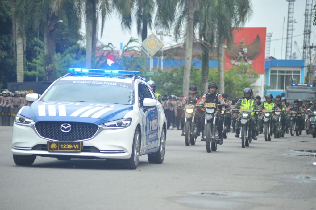 Dipimpin langsung Dansat Brimob Polda Kalbar Kombes Pol Irwan Jaya S.I.K sebagai Dirlat Sispamkota dan didampingi oleh Karo OPS Polda Kalbar Kombes Pol Asep Saepudin S.I.K, Polda Kalbar mengerahkan sebanyak 30 unit kendaraan Taktis Roda dua maupun Roda Empat. Selain itu juga dikerahkan sebanyak 532 orang Personel Polda Kalbar, 20 orang Personil TNI dari Kodam Tanjungpura XII, dan 39 orang Personel Satpol PP Provinsi Kalbar dalam latihan simulasi tersebut.