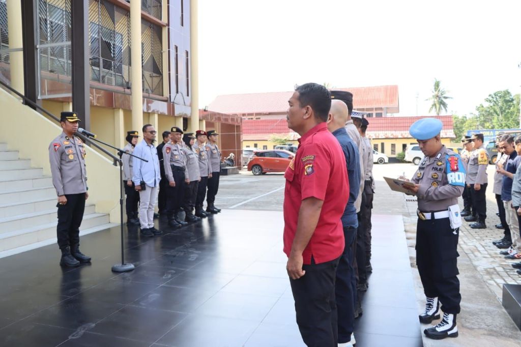 Polresta Pontianak, Polda Kalbar, – Kabag Ops Polresta Pontianak Komisaris Polisi Kompol Joko Sutriyatno Selaku Karendal Ops Mantap Praja Kapuas pimpin apel kesiapan tahapan Cipta Kondisi Pilkada 2024.