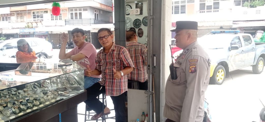 Dalam kegiatan ini, petugas menyampaikan himbauan kamtibmas kepada warga dan pedagang guna meningkatkan kewaspadaan terhadap potensi gangguan keamanan.