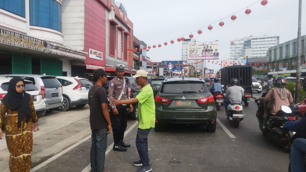 Pontianak, Polda Kalbar 8 Februari 2025 – Dalam rangka menciptakan kelancaran dan ketertiban lalu lintas, anggota Satuan Tugas Keamanan, Keselamatan, Ketertiban, dan Kelancaran Lalu Lintas (Kamseltibcarlantas) Operasi Liong Kapuas 2025 Polresta Pontianak yang melaksanakan piket di Pos Pengamanan (Pos Pam) Flamboyan memberikan imbauan kepada para juru parkir di Pasar Flamboyan. Petugas mengingatkan agar kendaraan tidak diparkir hingga ke tengah jalan guna menghindari kemacetan dan gangguan lalu lintas.