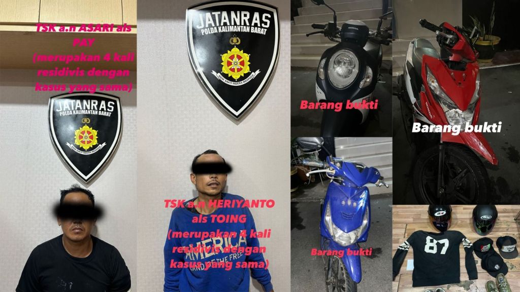 Dari hasil penangkapan ini, polisi berhasil mengamankan 1 (satu) unit Motor honda Beat warna merah putih, 1 (satu) unit Motor honda Beat warna putih biru, 1 (satu) unit Motor honda Scoopy warna cream biru, serta peralatan yang digunakan saat beraksi. Kedua tersangka diketahui merupakan residivis dengan rekam jejak kriminal yang panjang, di mana masing-masing sudah empat kali keluar masuk penjara atas kasus yang sama.