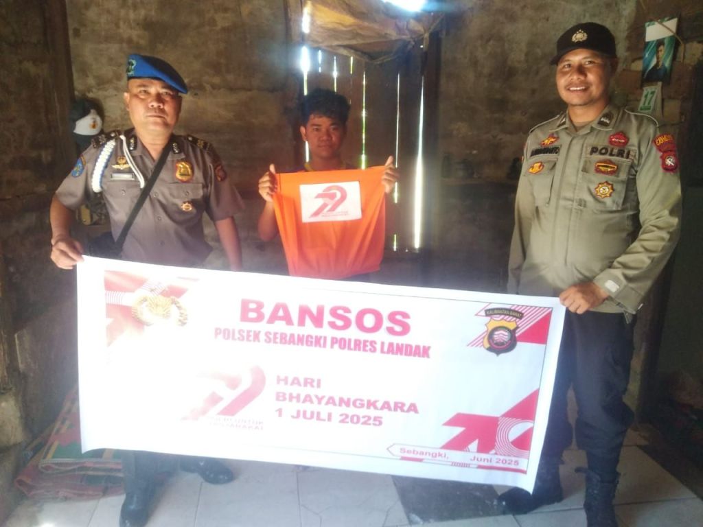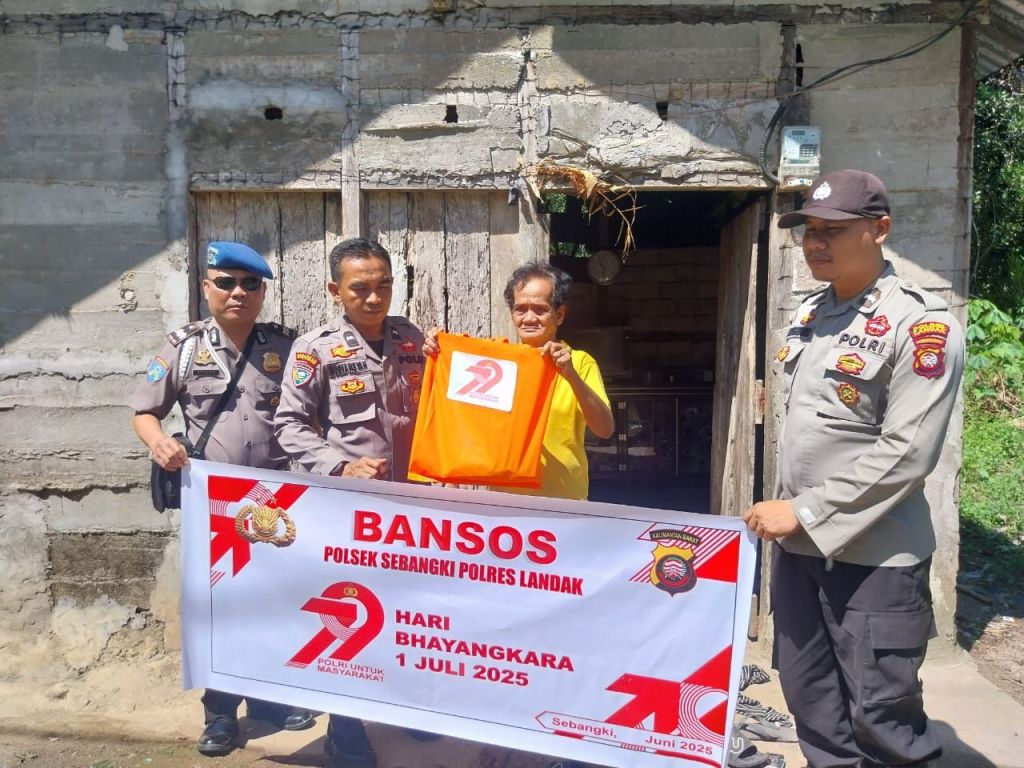 Polsek Sebangki~ Polres Landak ~ Polda Kalbar ~Dalam rangka menyambut Hari Bhayangkara ke-79 yang jatuh pada 1 Juli 2025, Polsek Sebangki Polres Landak menggelar kegiatan bakti sosial (Bansos) sebagai bentuk nyata kepedulian dan kedekatan Polri dengan masyarakat, ” Selasa (17/6/2025)