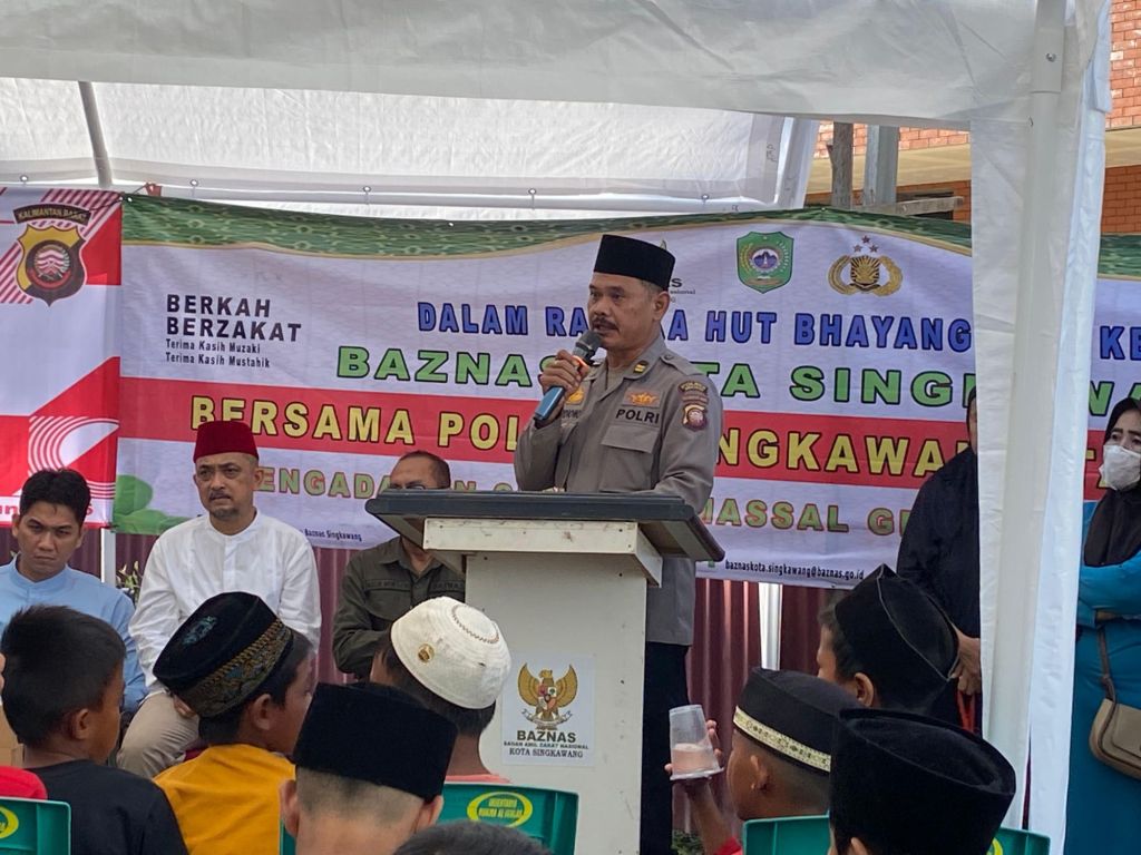 Dalam sambutannya, Kapolres Singkawang melalui IPTU Mardiono menyampaikan, “Bahwa kegiatan ini merupakan wujud kepedulian Polri terhadap masyarakat, terutama dalam hal kesehatan dan pendidikan. Ia berharap, anak-anak yang mengikuti sunat massal ini dapat tumbuh menjadi generasi yang sehat, cerdas, dan berguna bagi bangsa. Selain itu, ia juga menyampaikan rasa terima kasih kepada semua pihak yang telah mendukung dan membantu terselenggaranya acara ini, Tuturnya