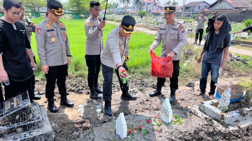 Dalam suasana haru, Kapolresta menyampaikan belansungkawa secara langsung kepada keluarga yang ditinggalkan.