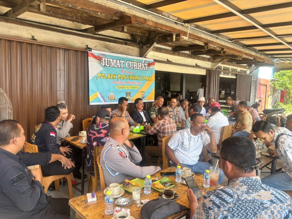 Pontianak,Kalbar – Dalam menjaga situasi kamtibmas yang aman dan kondusif Kapolsek Pontianak Utara ajak masyarakat turut berperan unjuk mewujudkannya hal ini disampaikan dalam kegiatan ngopi bersama masyarakat yang bertajuk Jum”at Curhat yang berlangsung di Warkop Kopitiam Jl. Gst. Situt Mahmud pontianak Utara. Jum’at (11/7/2025).