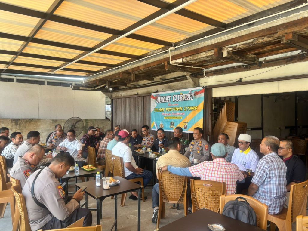 Kegiatan Jum’at curhat yang dihadiri sejumlah tokoh masyarakat dan forkopimcam Pontianak utara diantaranya Camat Pontianak Utara Indrawan Tauhid. S. Stp. M.si,Danramil Pontianak Utara Mayor Jumri dan H. M. Fauzi S.Sos sekretaris IKBM Kalbar dan sejumlah tokoh masyarakat dan tokoh Agama serta personel Polsek Pontianak Utara.