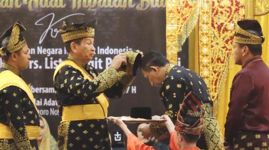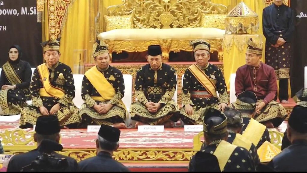 Pekanbaru, Riau — Kapolri Jenderal Polisi Drs. Listyo Sigit Prabowo menerima Anugerah Adat Ingatan Budi dari Lembaga Adat Melayu (LAM) Riau dalam sebuah prosesi adat yang berlangsung khidmat di Rumah Adat Melayu, Pekanbaru, pada Sabtu (12/7/2025).
