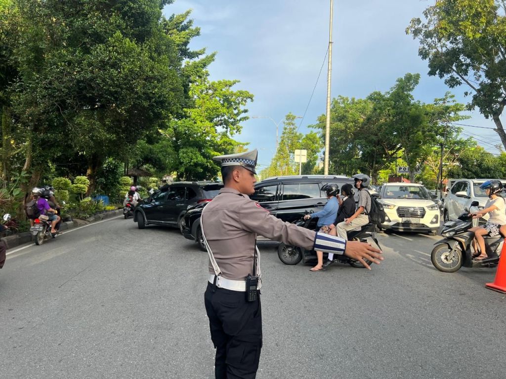 Pontianak Selatan, Polda Kalbar – Personil Polsek Pontianak Selatan melaksanakan pengaturan dan penjagaan lalu lintas di Wilayah Polsek Pontianak Selatan antisipasi macet lalu lintas dan kecelakaan Lalu lintas di Wilayah Pontianak Selatan. Selasa,15/7/2025.