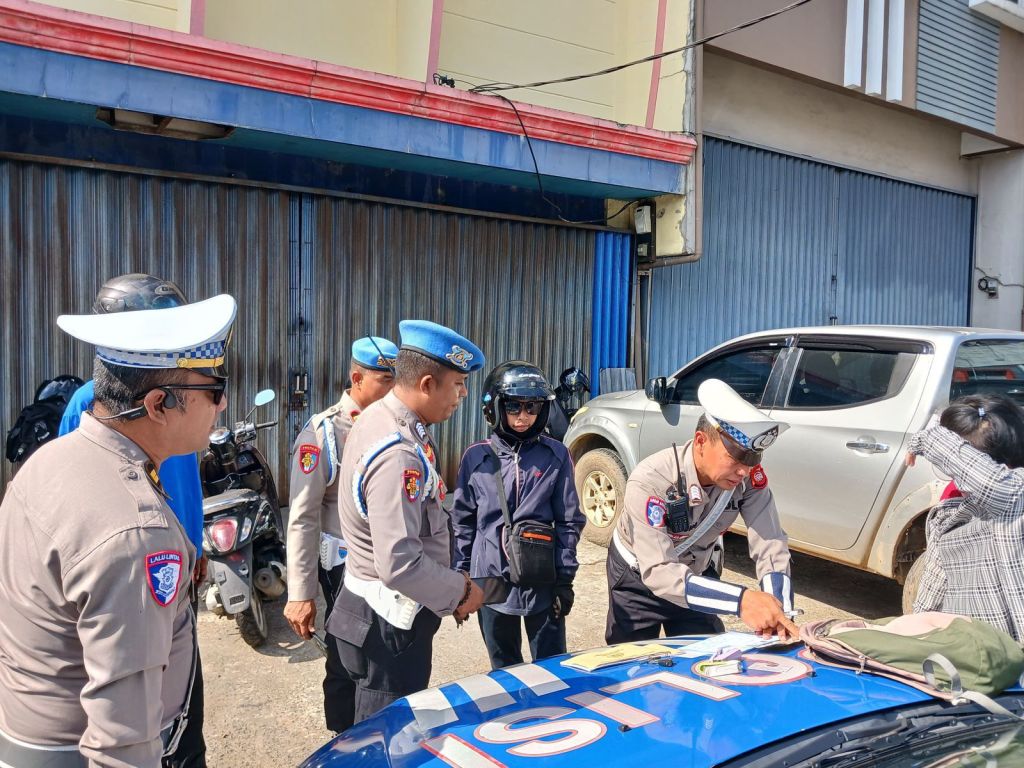 Dalam giat tersebut, petugas gabungan dari Satuan Lalu Lintas melakukan pemeriksaan terhadap kendaraan bermotor, dengan fokus pada kelengkapan administrasi seperti SIM dan STNK, serta kelengkapan teknis kendaraan seperti spion, plat nomor, dan penggunaan helm berstandar SNI bagi pengendara roda dua.