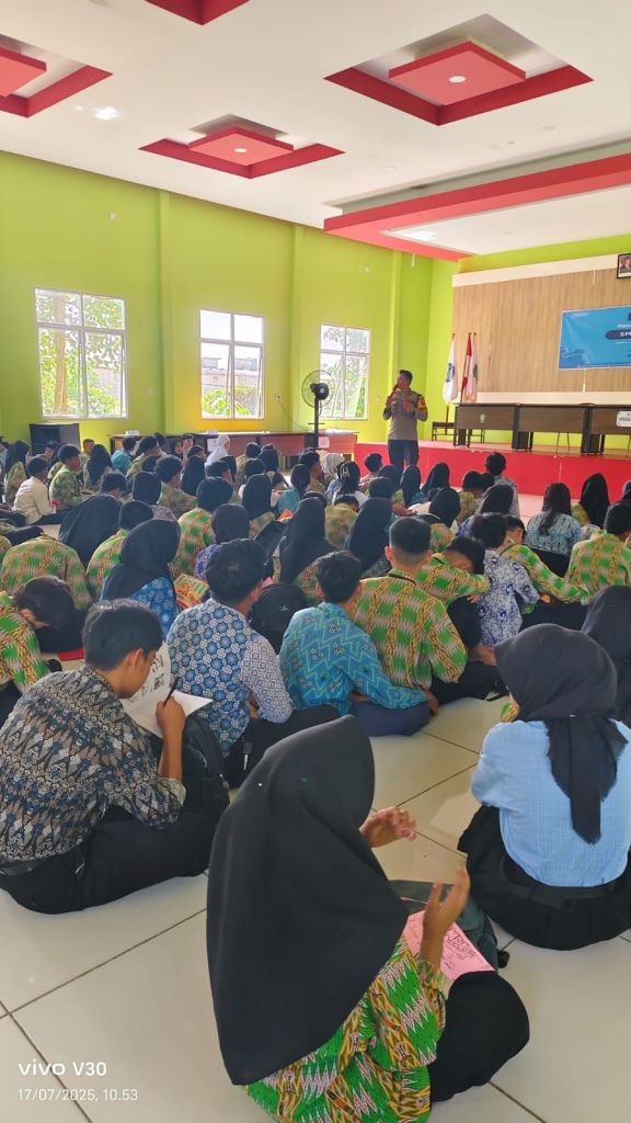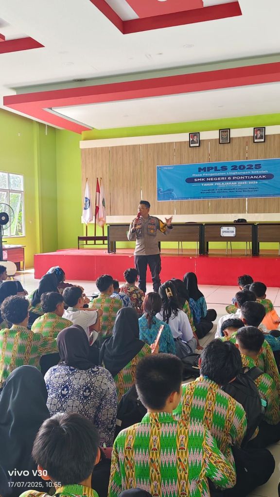 Pontianak,Kalbar – Dihadapan peserta MPLS SMI N 6 Pontianak Utara Bhabinkamtibmas Kelurahan Siantan Hulu Aipda Iwan Rudianto minta kepada seluruh siswa dan guru agar tidak melakukan tindakan bulying dan kekerasan dilingkungan sekolah.Kamis (17/7/2025).