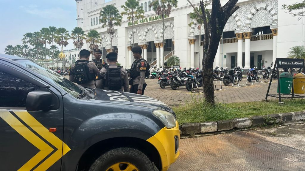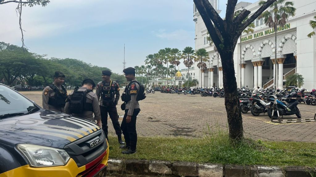 Dalam rangka memberikan rasa aman dan nyaman kepada masyarakat yang melaksanakan ibadah Sholat Jumat, personel Patroli Enggang Polresta Pontianak melaksanakan kegiatan pengamanan dan pemantauan di sekitar area Masjid Raya Mujahidin, Pontianak, pada Jumat (18/07/2025) siang.