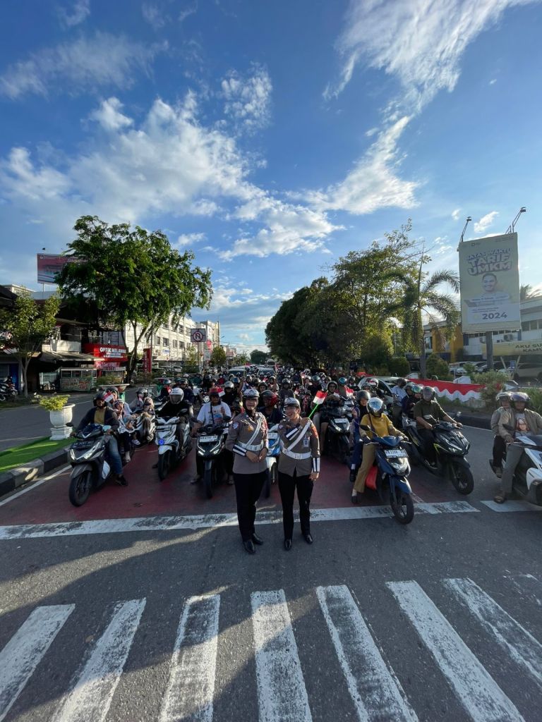 Kegiatan yang dipimpin langsung oleh Kasat Lantas Polresta Pontianak, Kompol Radian Andy Pratomo, S.I.K., M.H., ini sebagai bentuk ajakan kepada masyarakat untuk menumbuhkan semangat nasionalisme dan cinta tanah air menjelang peringatan Kemerdekaan RI.