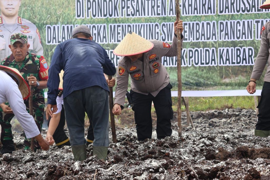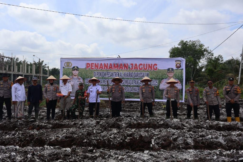 Pontianak, Polda Kalbar – Dalam rangka mendukung program ketahanan pangan nasional, Polresta Pontianak bersama Forkopimcam dan Dinas Pertanian melaksanakan kegiatan penanaman jagung di area Pondok Pesantren Yayasan Al-Khairat Darussalam, yang berlokasi di Jl. Khatulistiwa Gg. Beringin 2, Kelurahan Batulayang, Kecamatan Pontianak Utara, pada Rabu pagi (6/8).