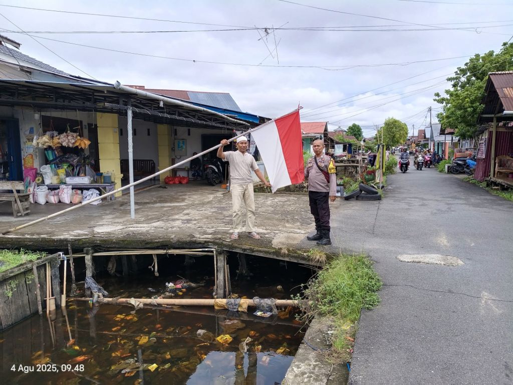 Pontianak, Kalbar 12 Agustus 2025 – Dalam rangka menyambut Hari Kemerdekaan Republik Indonesia ke-80, Bhabinkamtibmas Kelurahan Tanjung Hilir, Polsek Pontianak Timur, Bripka Heri Purwanto mengajak seluruh warga untuk memasang Bendera Merah Putih di depan rumah masing-masing.